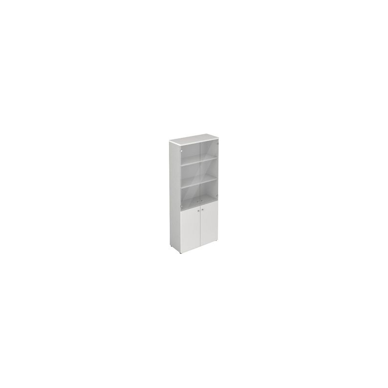 Mobile alto con 2 ante vetro e 2 ante legno 4 ripiani linea "Stilo" 90cm x 40,1cm x 212,5cm - grigio
