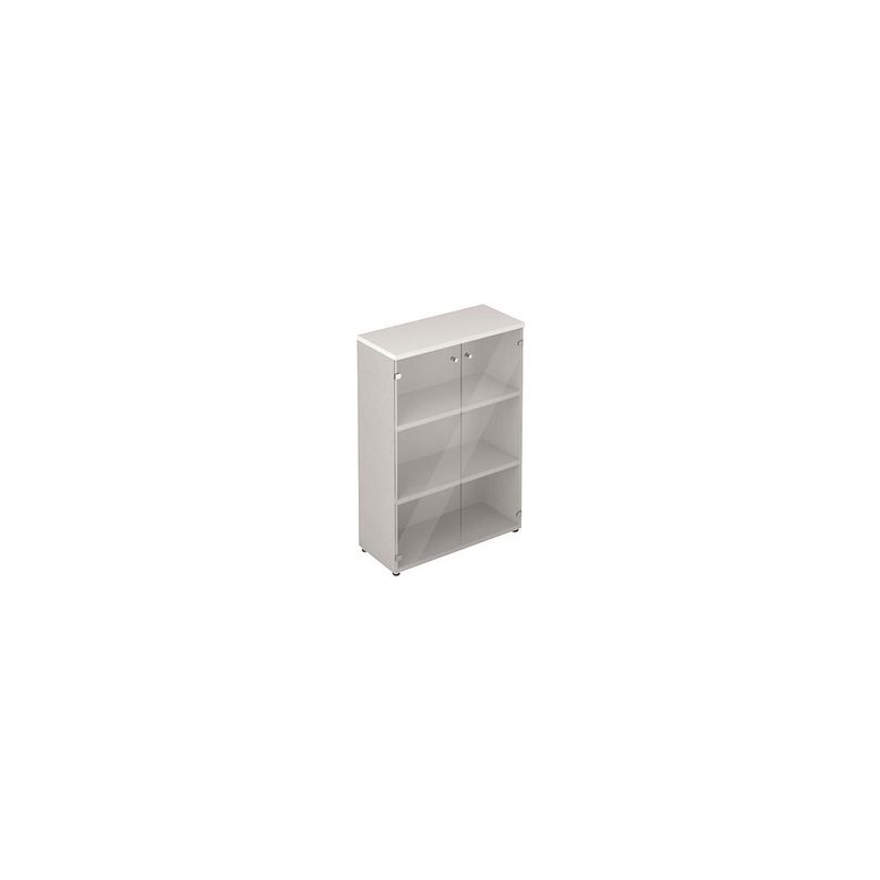 Mobile medio con 2 ante vetro 2 ripiani linea "Stilo" 90cm x 40,1cm x 129,3cm - acero